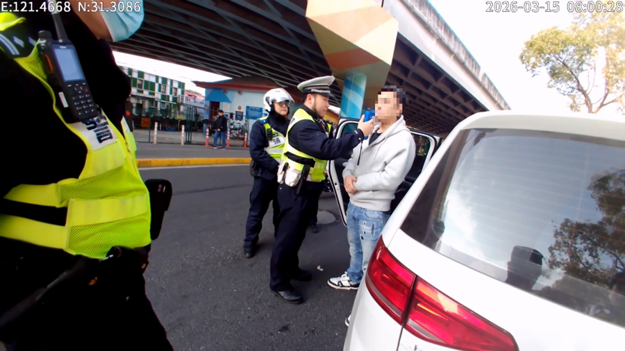 3月15日7时许,虹口公安分局江湾派出所民警在巡逻至场中路近凉城路时,发现一辆小轿车停在路中央,占用了一根车道,迫使后续车辆必须绕行通过,民警随即上前核查情况。当驾驶位车窗摇下后,一名年轻男子探出头来。面对民警的询问,男子有气无力地答应立即将车驶离,但手上动作却非常迟缓,甚至不知所谓地解开了安全带。民警察觉异常,追问男子是否身体不适,该男子却眼神躲闪,吞吞吐吐地说自己是外出买早点,因为太困便在等红灯时睡着了。可此时民警已经从男子的神情以及现场的气味判断出,其有酒驾嫌疑,随即请其下车接受进一步检查。